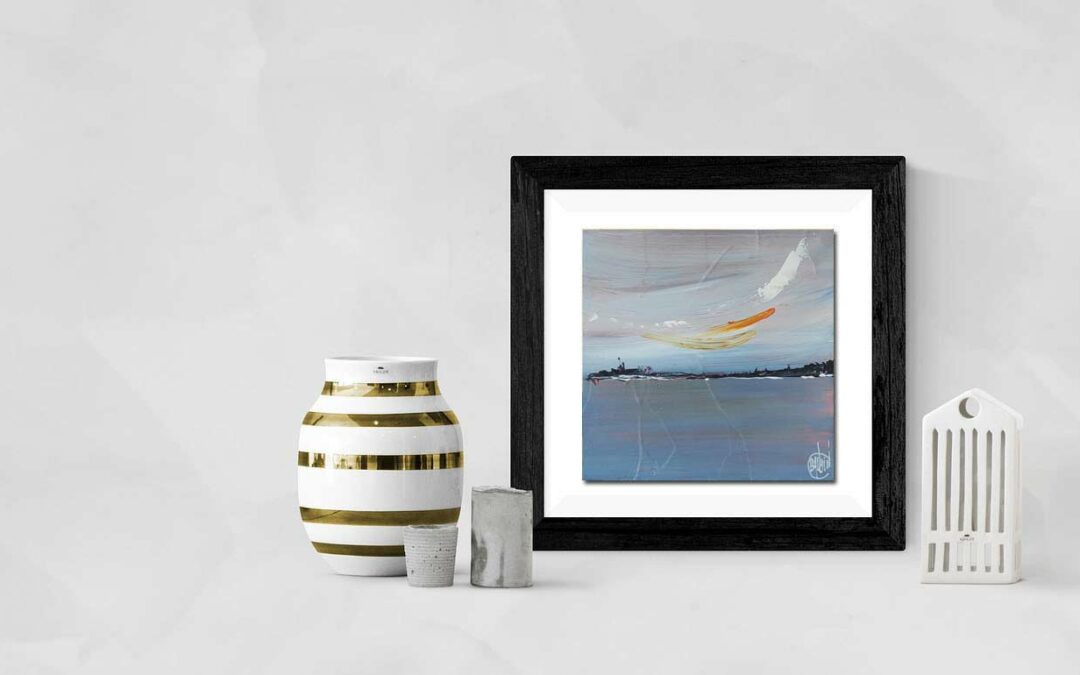 Tableau abstrait petit format encadré avec un cadre noir et blanc