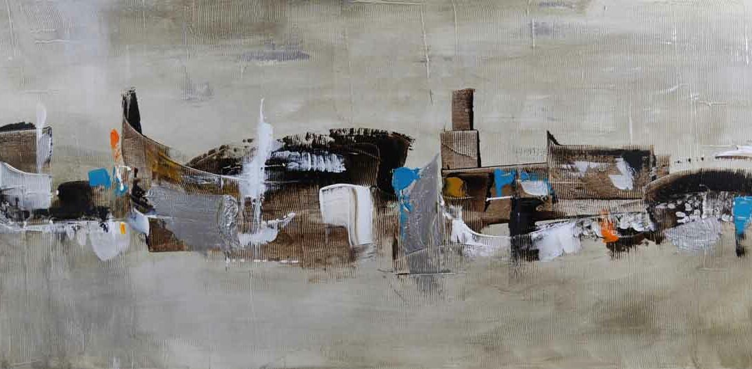 Tableau abstrait 40×120 représentant une ville imaginaire