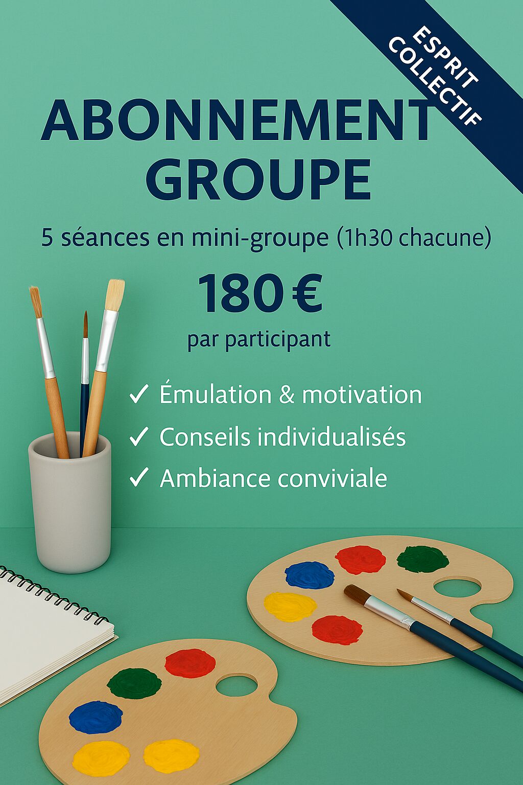 👉 Si vous réservez en groupe complet (4 participants), une surprise artistique vous sera offerte en fin de cycle.