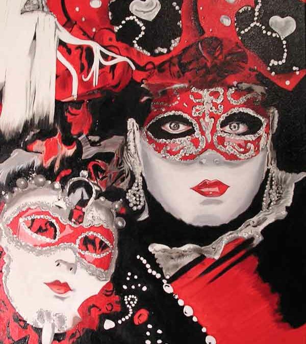 Tableau « Red and Black » – masques vénitiens au format 40×50